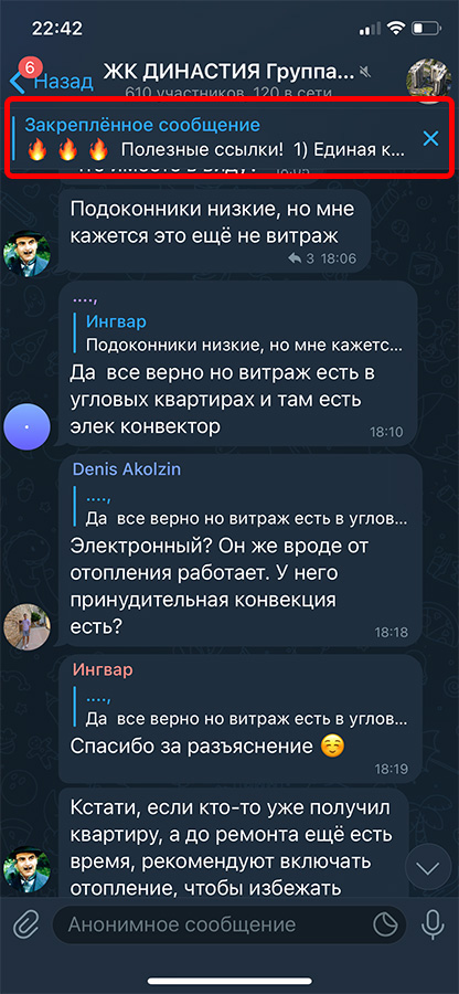 Реклама размещается в группах (чатах) жильцов в Телеграмм. Реклама закрепляется вверху каждой группы на месяц. Каждый пользователь заходя в группу постоянно видит закрепленное сообщение.